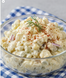 A cold salad of boiled potatoes, mayonnaise, and various other ingredients like celery and onions.