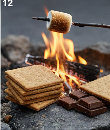 A traditional campfire treat consisting of a toasted marshmallow and a layer of chocolate sandwiched between two pieces of graham cracker.
